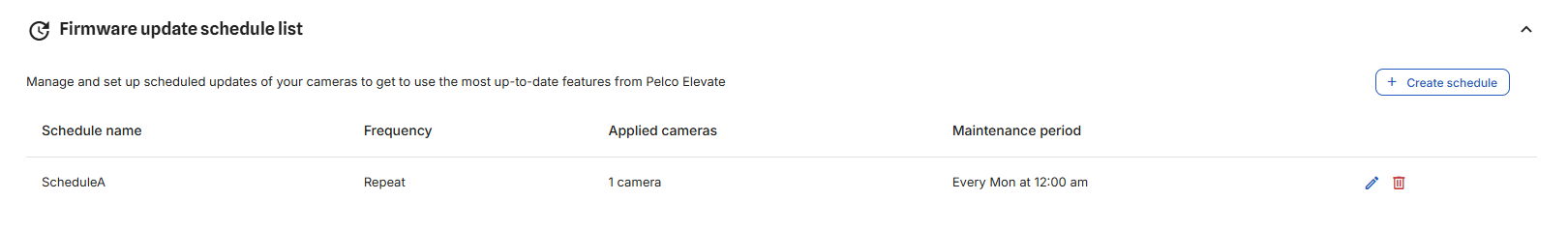 Figure 3: Camera firmware update schedules is shown on the Firmware Update Schedule list.